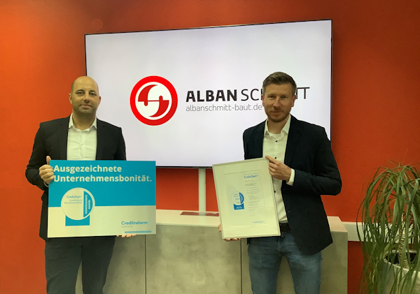 Dem Unternehmen Alban Schmitt GmbH & Co. KG wurde am 08.10.2025 erneut das Bonitätszertifikat »CrefoZert« vergeben. Die Auszeichnung wurde in den Geschäftsräumen in Hohenroth an Frau Birgit Schmitt und Herrn Fabian Schmitt überreicht. Das Unternehmen belegt mit dem Qualitätssiegel von Creditreform Würzburg eine besondere wirtschaftliche Stabilität und finanzielle Stärke.